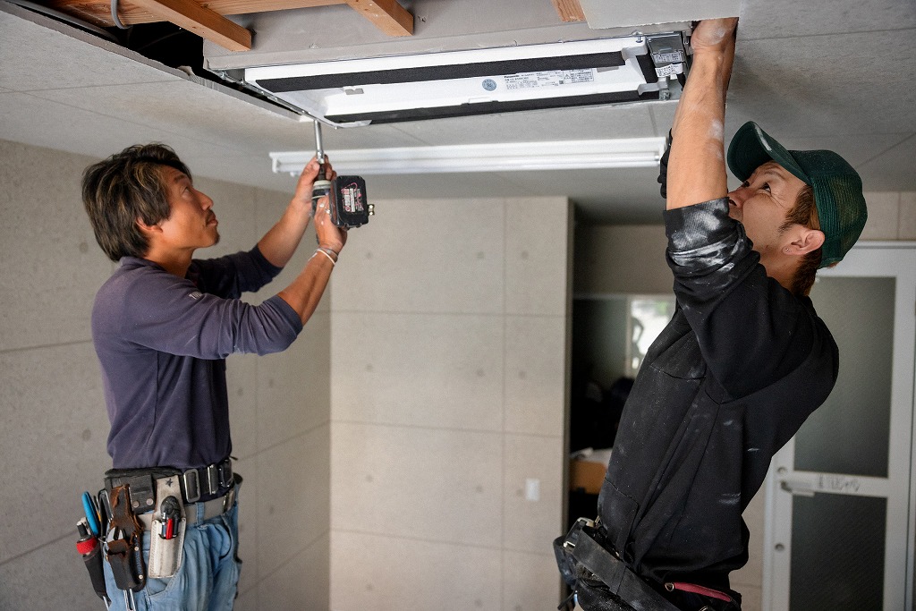 主に新築の現場(戸建て、マンション)での空調設備、エコキュート、電気工事を行っております。また店舗、オフィスなどの業務用エアコンの設置工事にも対応しております。